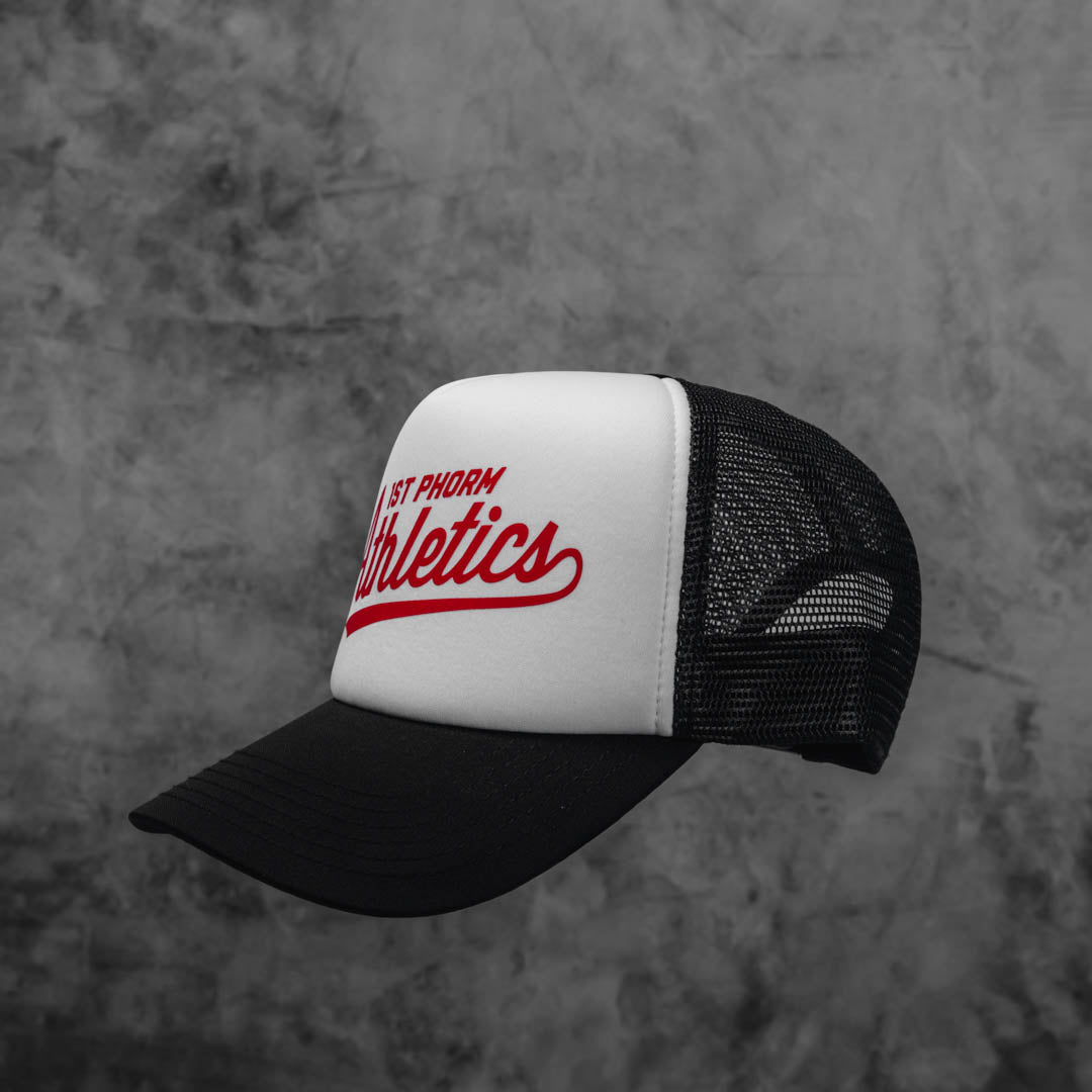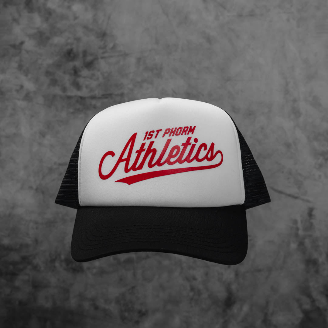 The 1P Athletics Foam Trucker Hat provides a vintage vibe with a 1st Phorm graphic you’ll love.