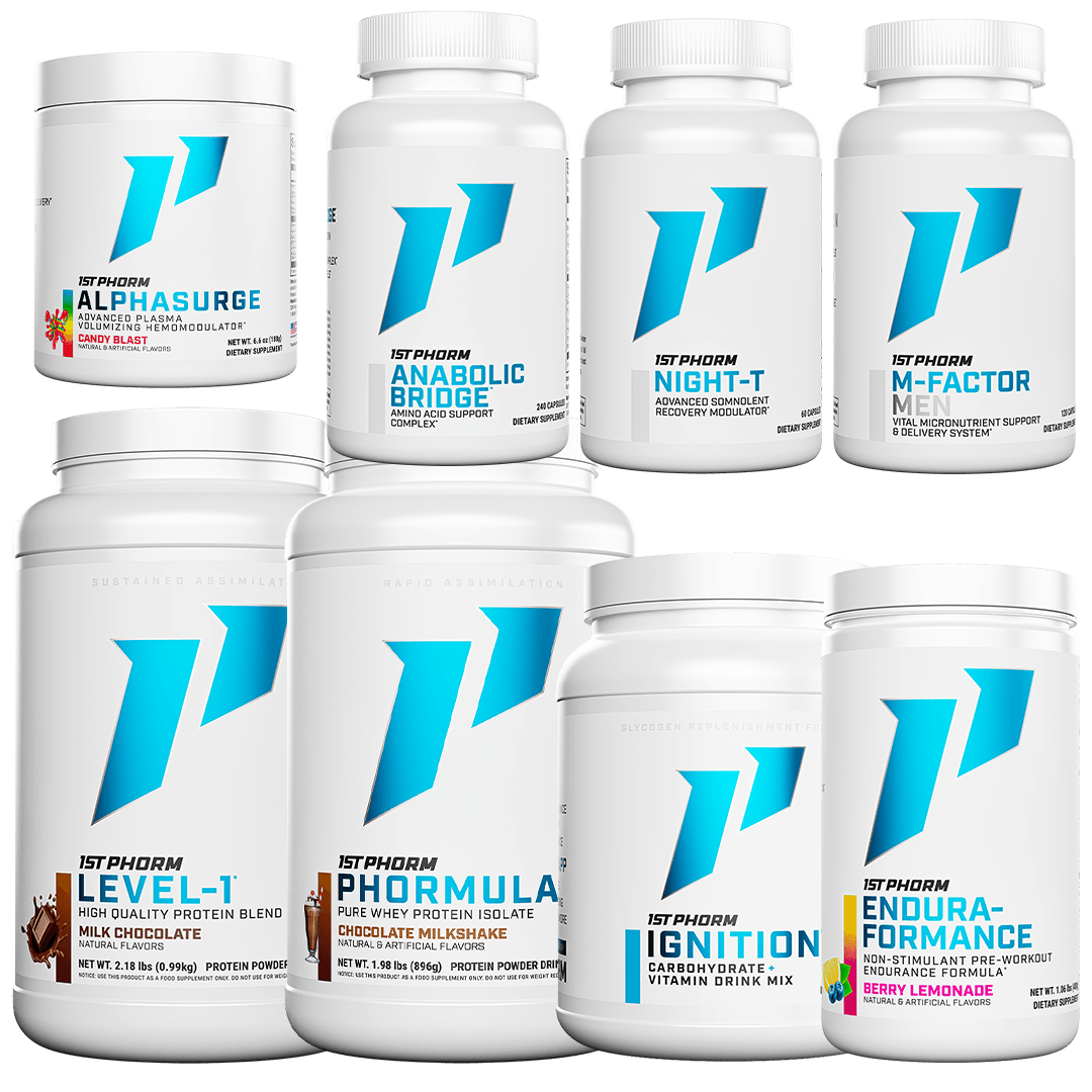 By having Level 1. Anabolic Bridge. and M-Factor. you will always have the nutrients you need to stay anabolic. Endura-Formance and AlphaSurge will increase the effectiveness of your precious time training. When you finally finish training. Phormula 1 and Ignition will be there to immediately start the repair process and promote muscle growth.